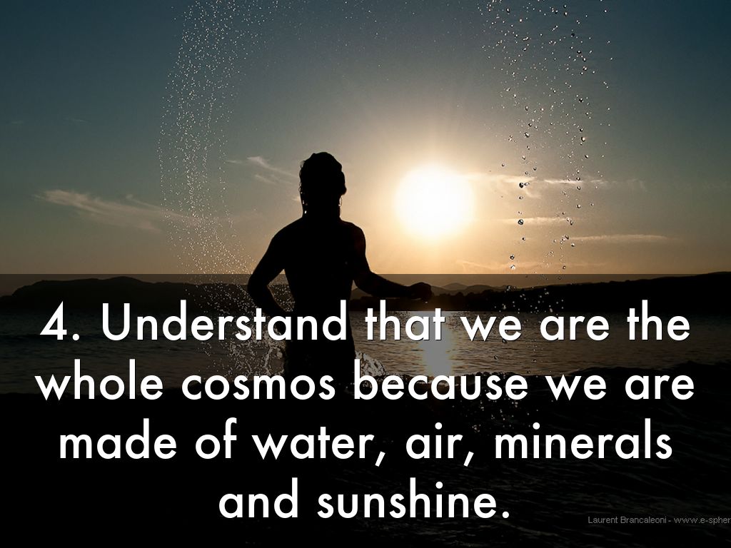 4. Understand that we are the whole cosmos because we are made of water, air, minerals and sunshine.