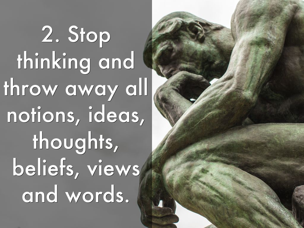 2. Stop thinking and throw away all notions, ideas, thoughts, beliefs, views and words.