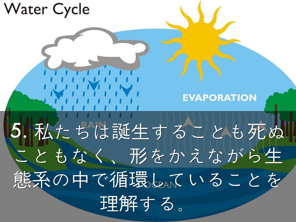 5. 私たちは誕生することも死ぬこともなく、形をかえながら生態系の中で循環していることを理解する。