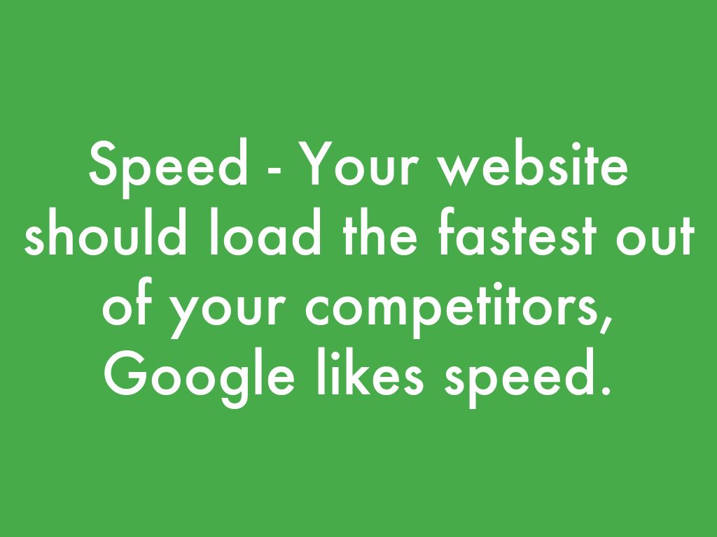 Speed - Your website should load the fastest out of your competitors, Google likes speed.