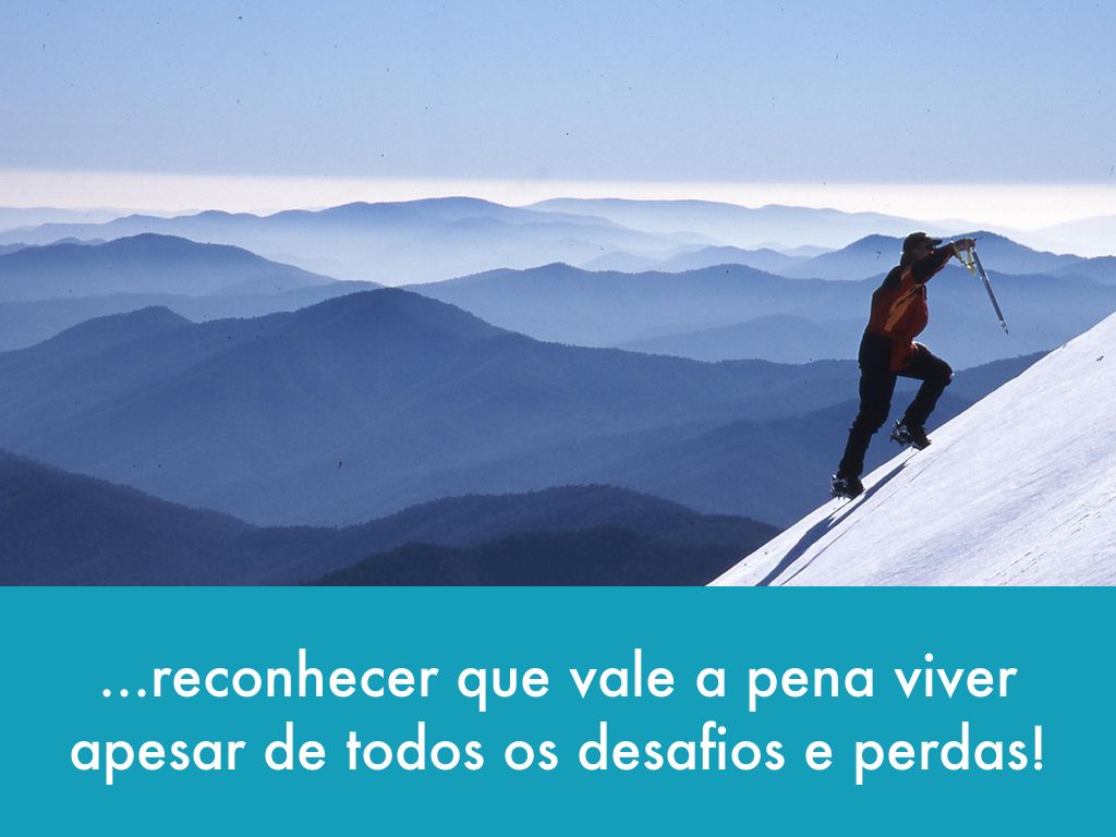 ...reconhecer que vale a pena viver apesar de todos os desafios e perdas!