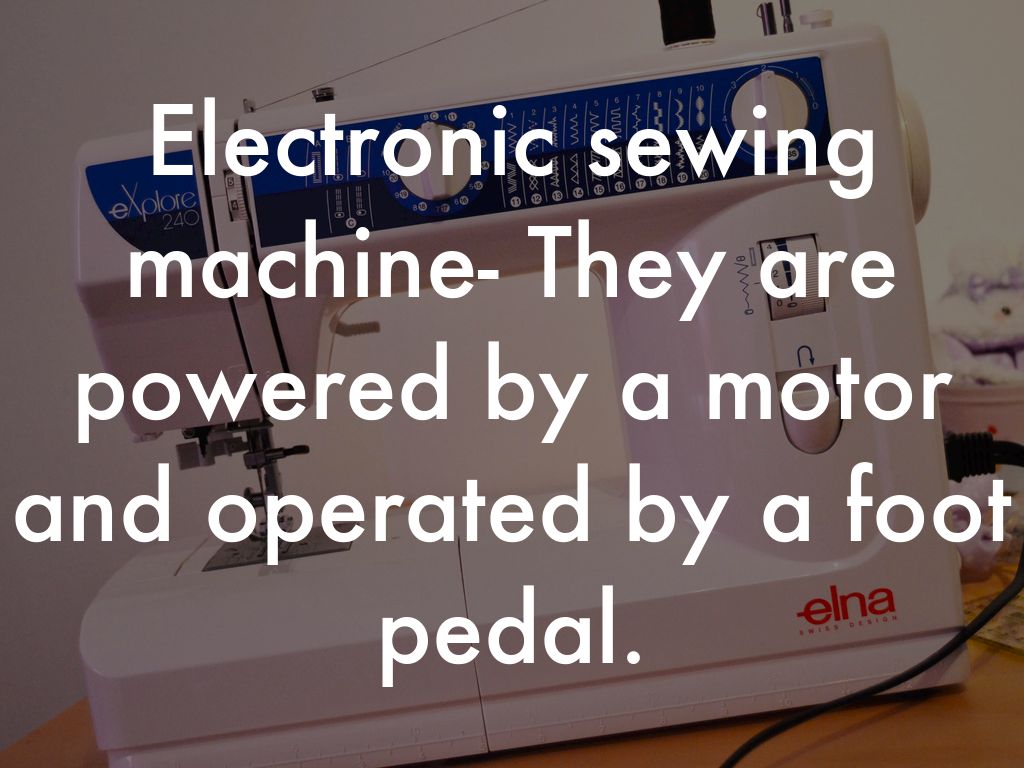 Electronic sewing machine- They are powered by a motor and operated by a foot pedal.