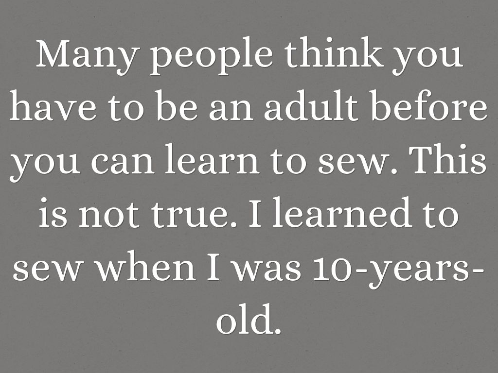 Many people think you have to be an adult before you can learn to sew. This is not true. I learned to sew when I was 10-years-old.