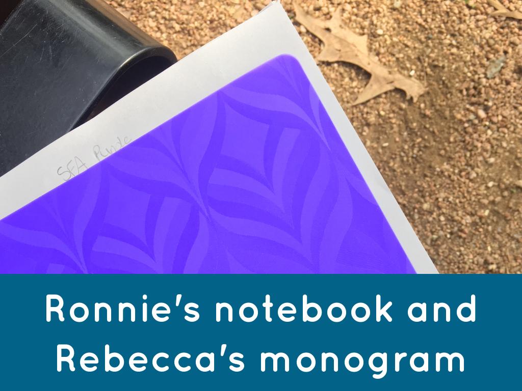 Ronnie's notebook and Rebecca's monogram