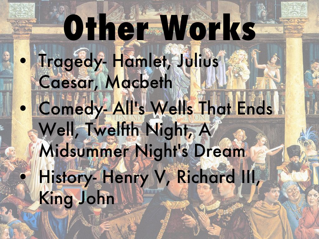 Comedy- All's Wells That Ends Well, Twelfth Night, A Midsummer Night's Dream