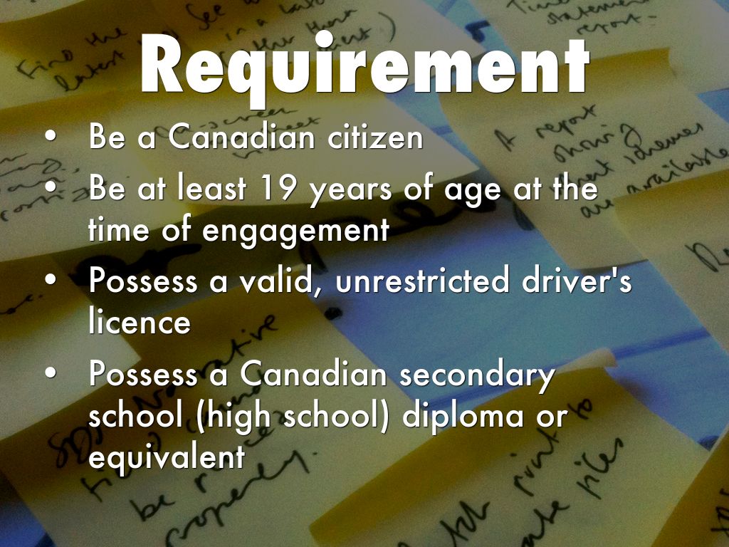 Possess a Canadian secondary school (high school) diploma or equivalent