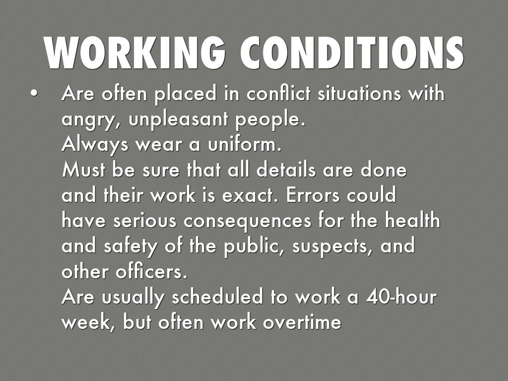 Must be sure that all details are done and their work is exact. Errors could have serious consequences for the health and safety of the public, suspects, and other officers.