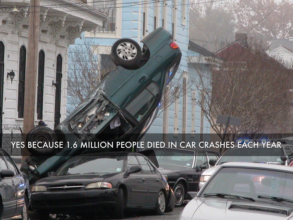 YES BECAUSE 1.6 MILLION PEOPLE DIED IN CAR CRASHES EACH YEAR