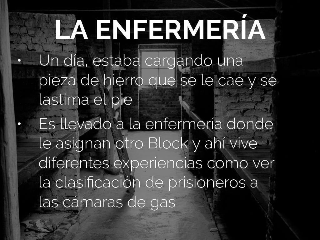 Es llevado a la enfermería donde le asignan otro Block y ahí vive diferentes experiencias como ver la clasificación de prisioneros a las cámaras de gas