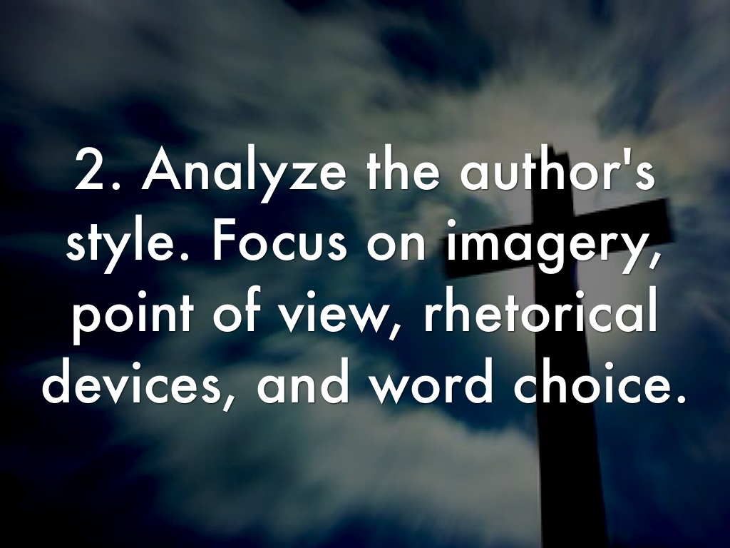 2. Analyze the author's style. Focus on imagery, point of view, rhetorical devices, and word choice.