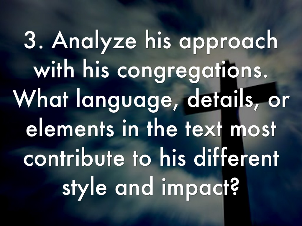 3. Analyze his approach with his congregations. What language, details, or elements in the text most contribute to his different style and impact?