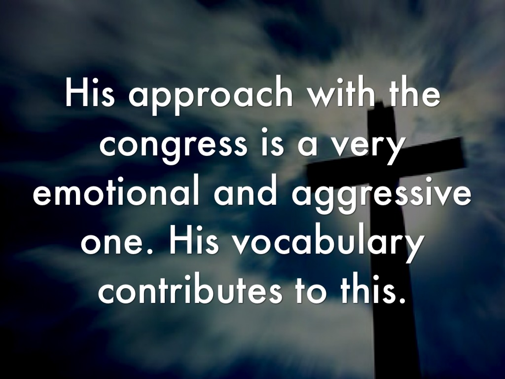 His approach with the congress is a very emotional and aggressive one. His vocabulary contributes to this.