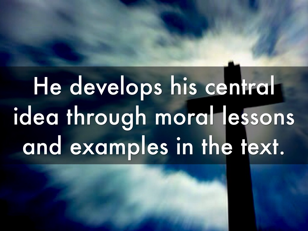 He develops his central idea through moral lessons and examples in the text.