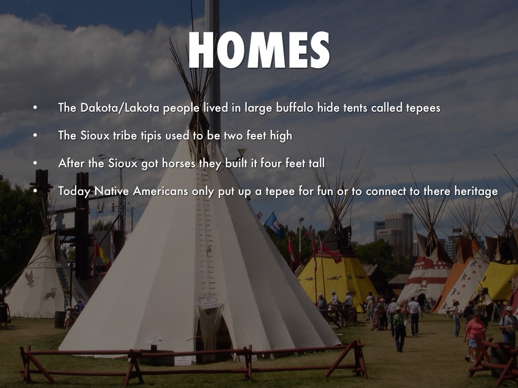 The Dakota/Lakota people lived in large buffalo hide tents called tepees