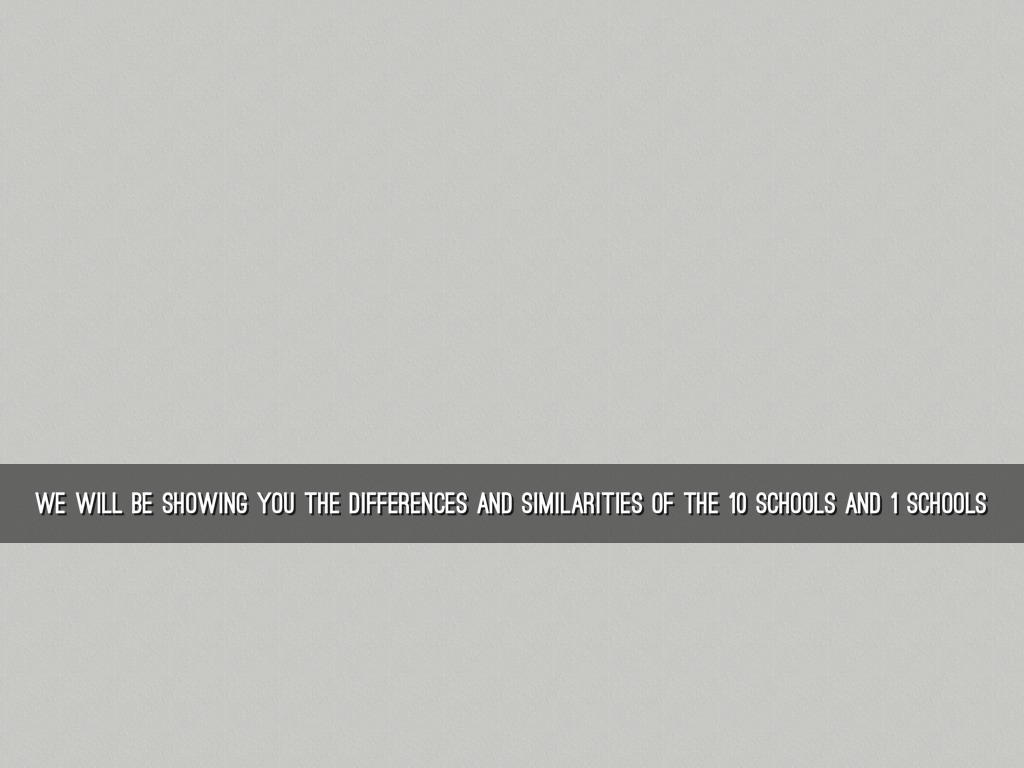 WE WILL BE SHOWING YOU THE DIFFERENCES AND SIMILARITIES OF THE 10 SCHOOLS AND 1 SCHOOLS
