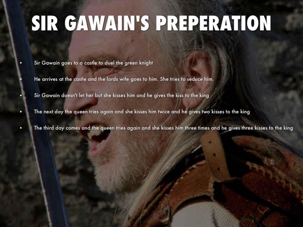 He arrives at the castle and the lords wife goes to him. She tries to seduce him.
