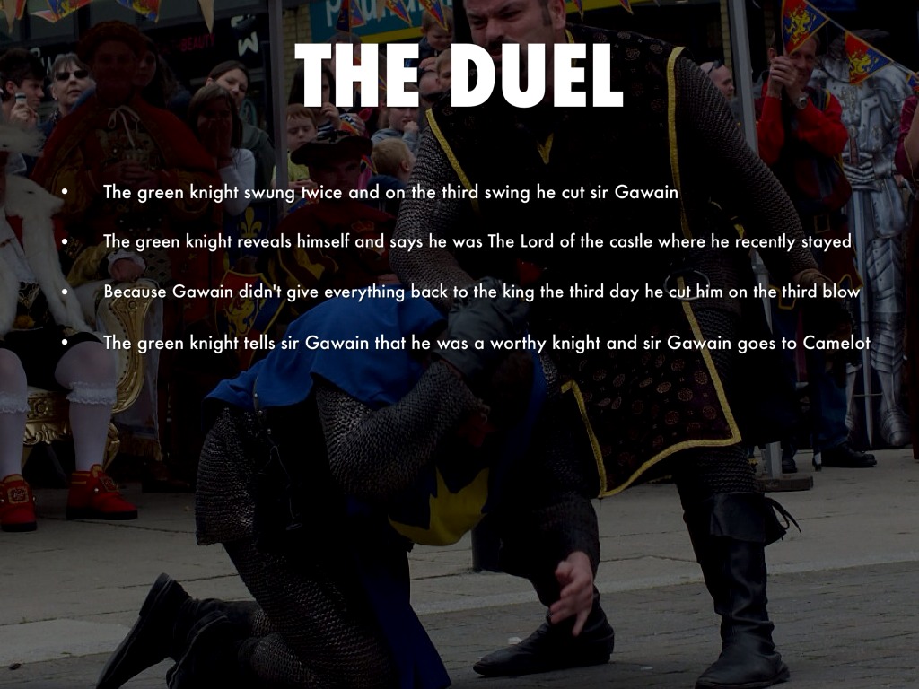 The green knight tells sir Gawain that he was a worthy knight and sir Gawain goes to Camelot