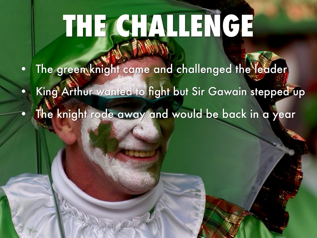 The green knight reveals himself and says he was The Lord of the castle where he recently stayed