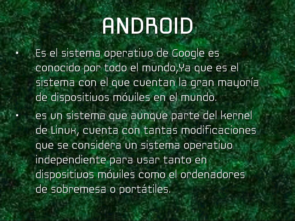 es un sistema que aunque parte del kernel de Linux, cuenta con tantas modificaciones que se considera un sistema operativo independiente para usar tanto en dispositivos móviles como el ordenadores de sobremesa o portátiles.