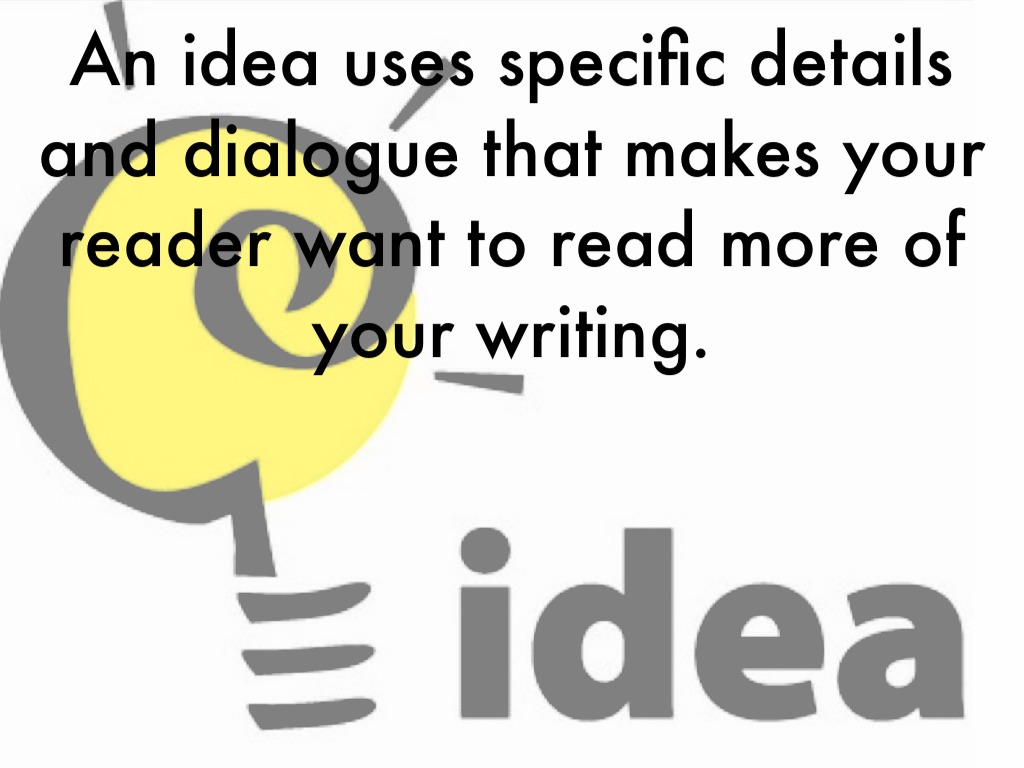 An idea uses specific details and dialogue that makes your reader want to read more of your writing.