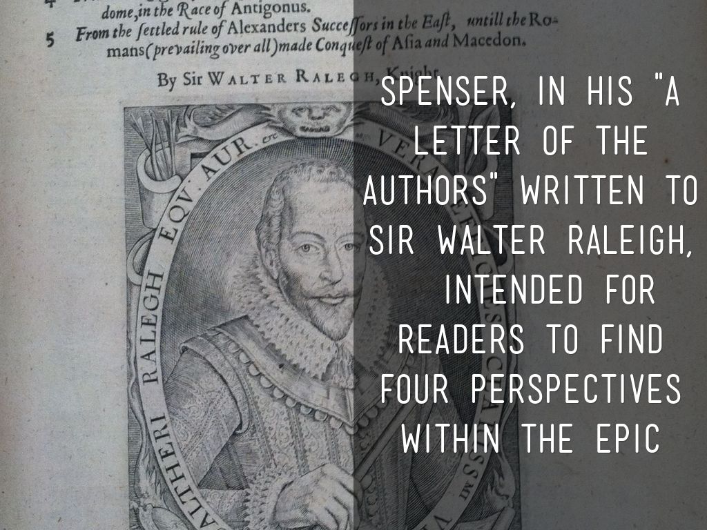 Spenser, in his "A Letter of the Authors" written to Sir Walter Raleigh, intended for readers to find four perspectives within the epic