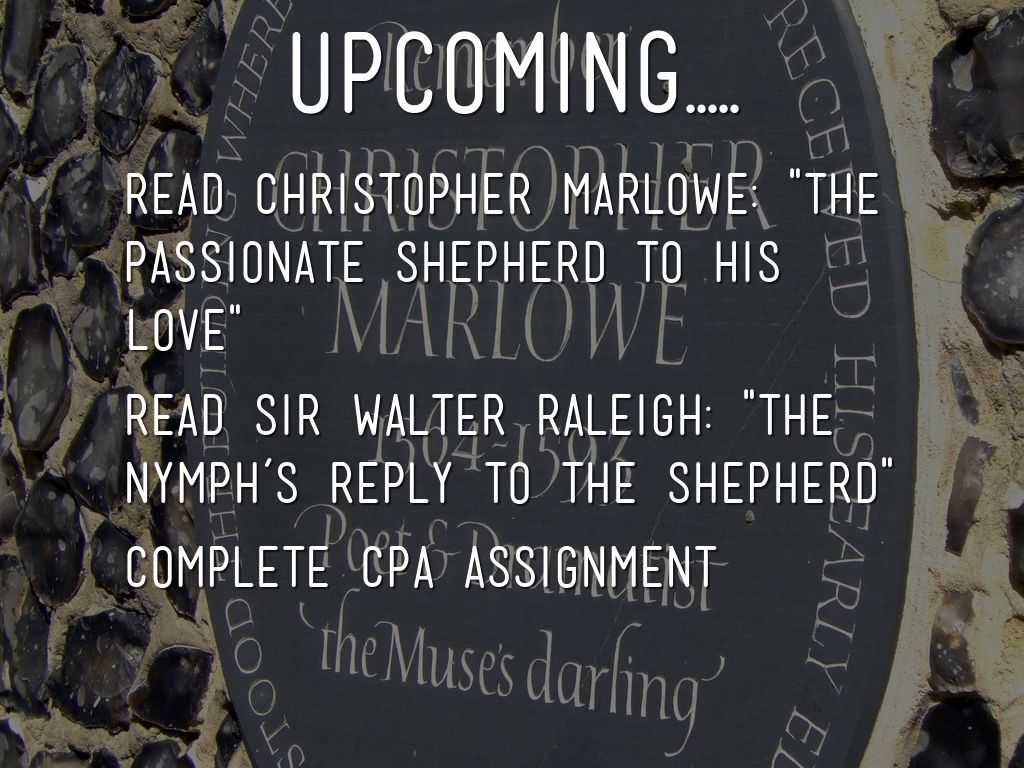- Read Christopher Marlowe: "The Passionate Shepherd to His Love"