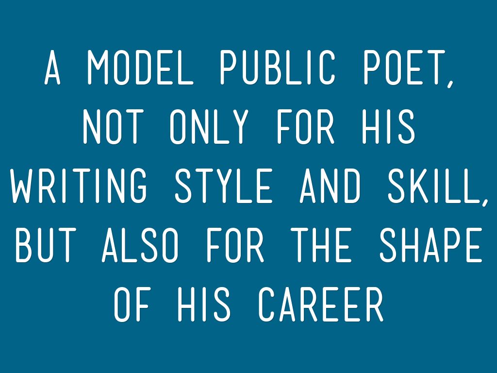a model public poet, not only for his writing style and skill, but also for the shape of his career
