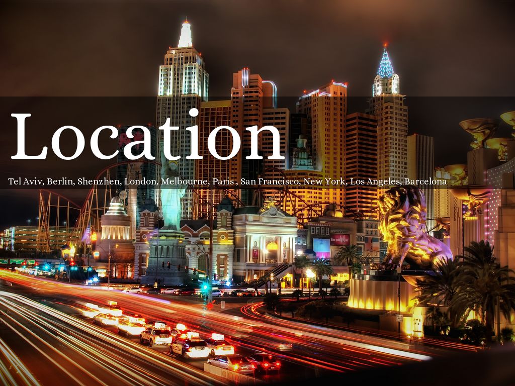 Tel Aviv, Berlin, Shenzhen, London, Melbourne, Paris , San Francisco, New York, Los Angeles, Barcelona