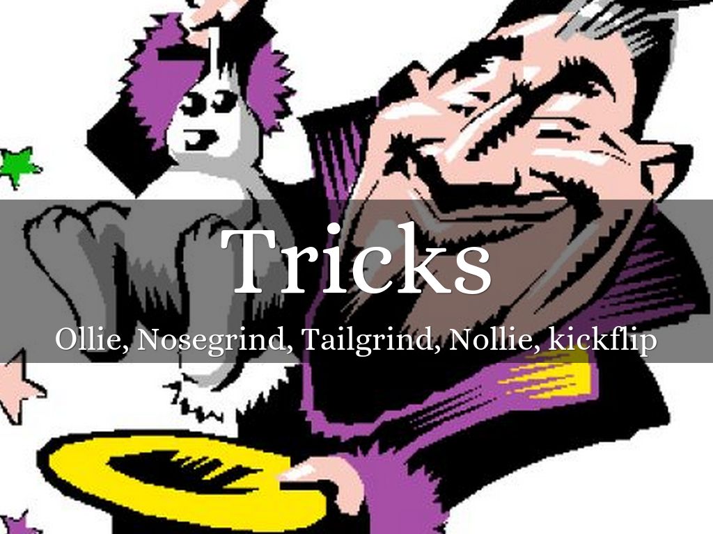 Ollie, Nosegrind, Tailgrind, Nollie, kickflip