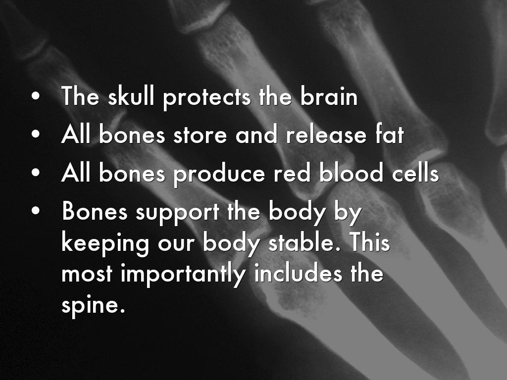 Bones support the body by keeping our body stable. This most importantly includes the spine.