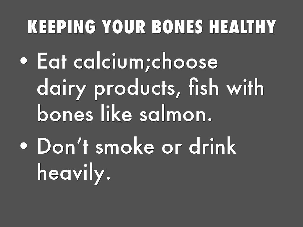 Eat calcium;choose dairy products, fish with bones like salmon.