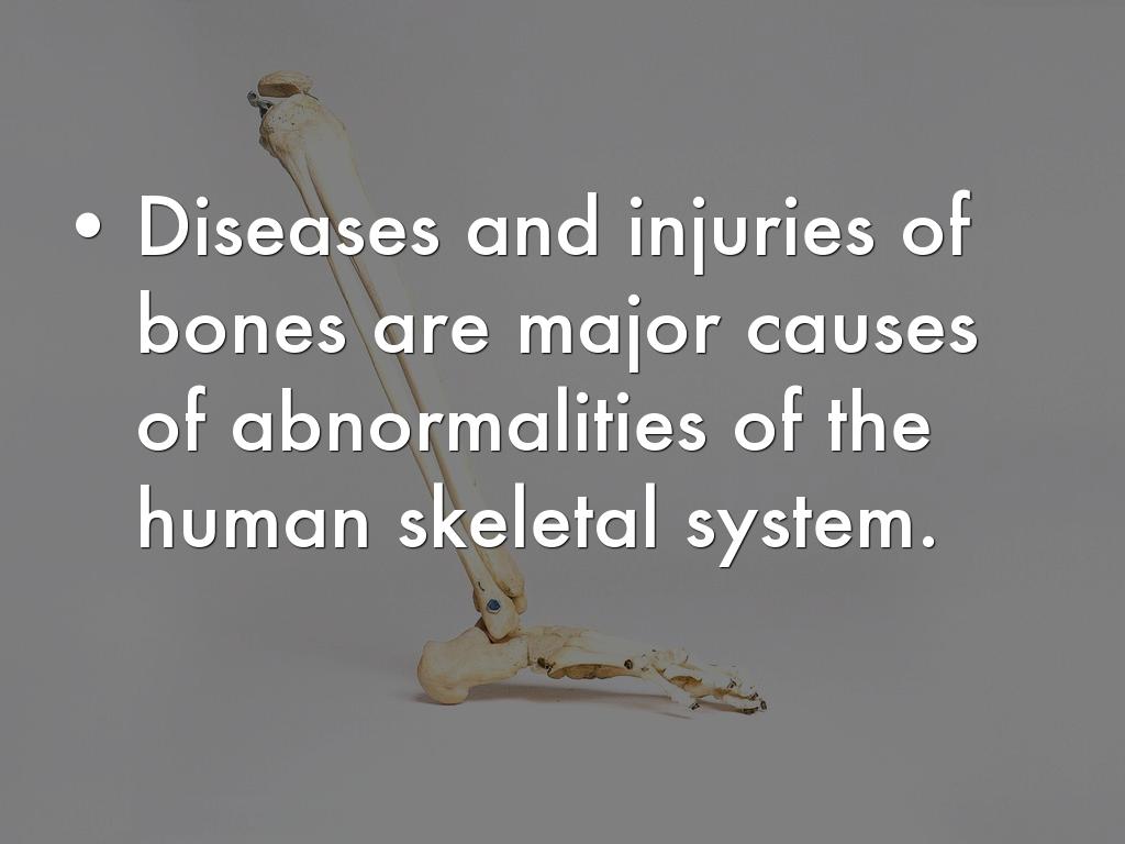 Diseases and injuries of bones are major causes of abnormalities of the human skeletal system.