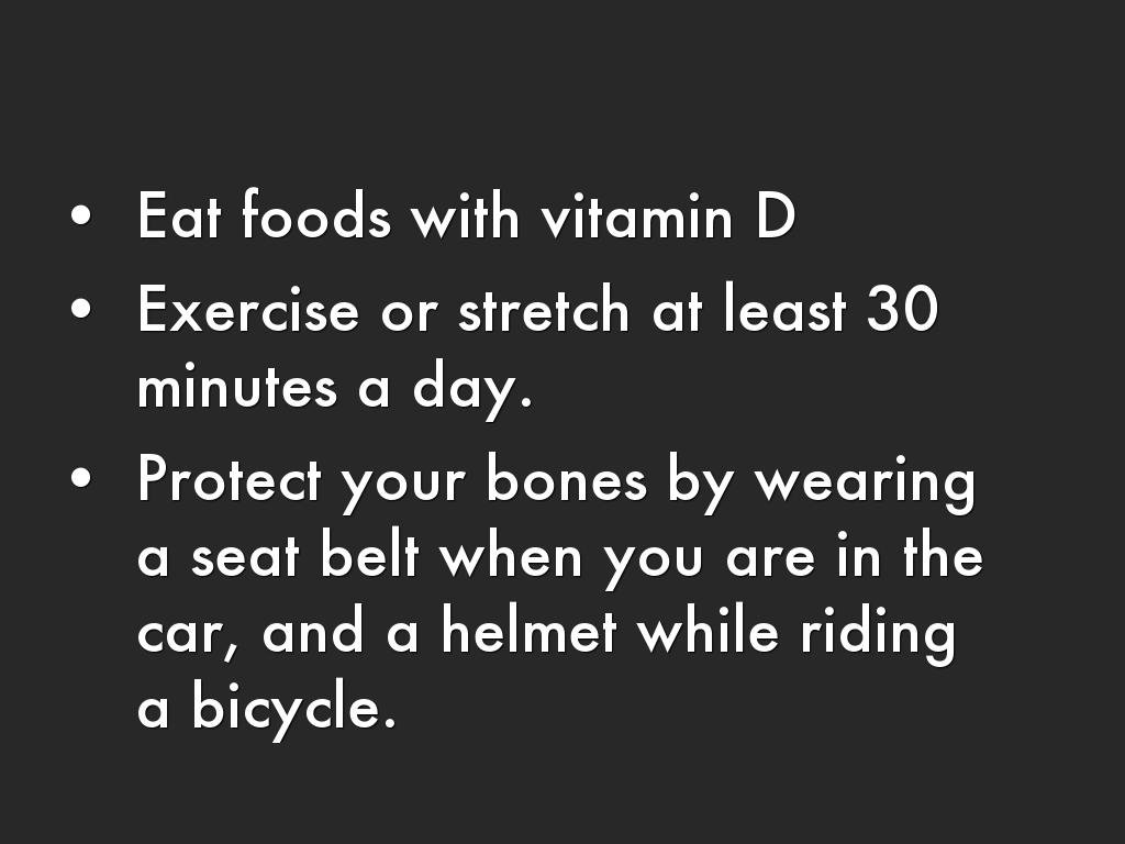 Protect your bones by wearing a seat belt when you are in the car, and a helmet while riding a bicycle.
