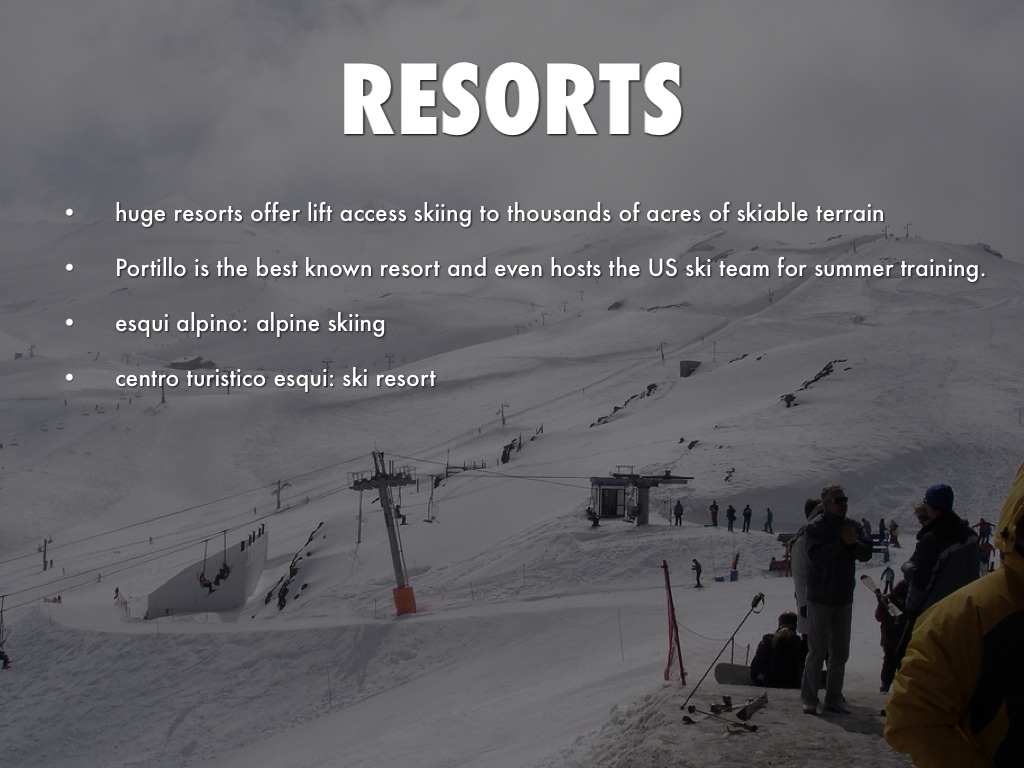 Portillo is the best known resort and even hosts the US ski team for summer training.