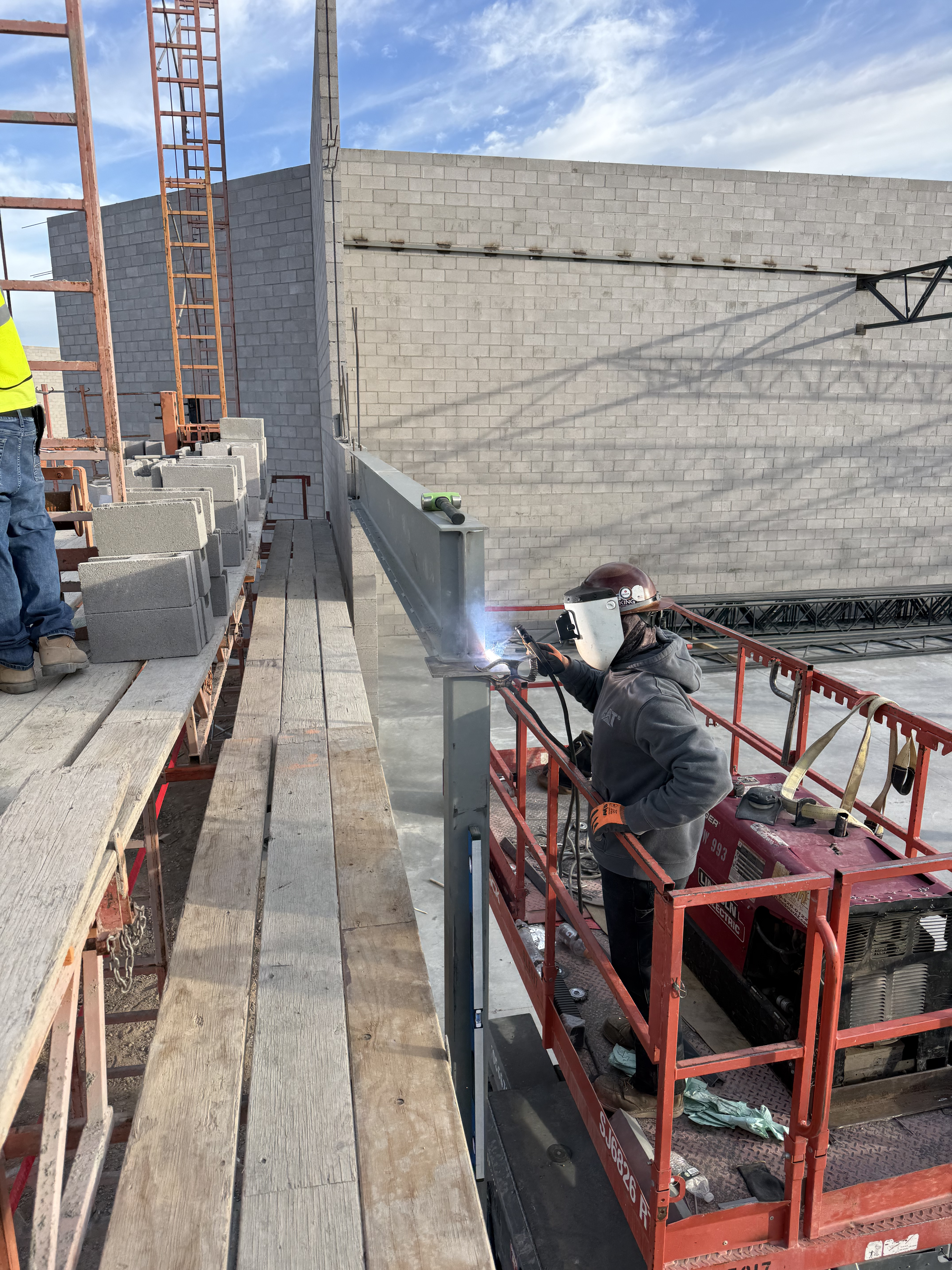 Continue welding ledger angle in building F