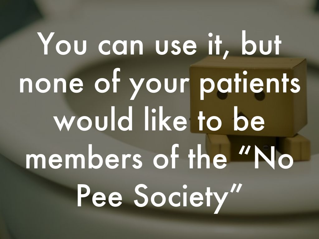 You can use it, but none of your patients would like to be members of the “No Pee Society”