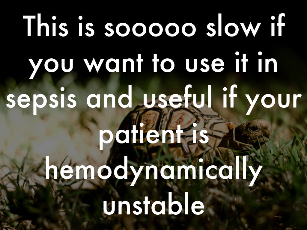 This is sooooo slow if you want to use it in sepsis and useful if your patient is hemodynamically unstable
