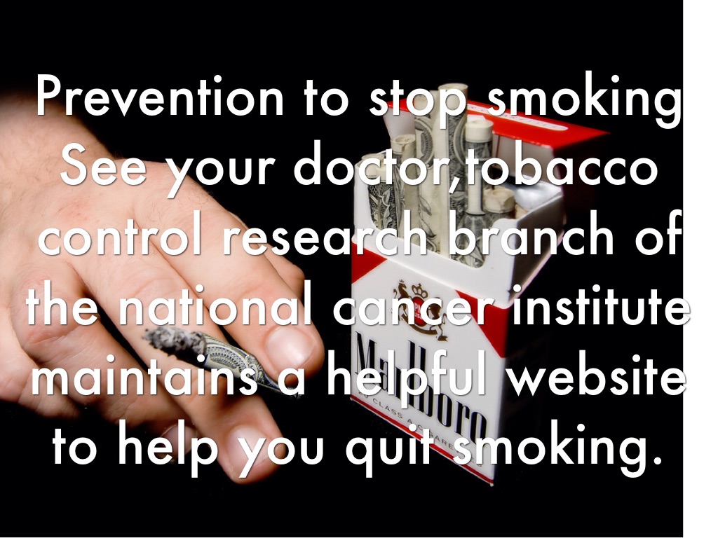 Prevention to stop smoking See your doctor,tobacco control research branch of the national cancer institute maintains a helpful website to help you quit smoking.