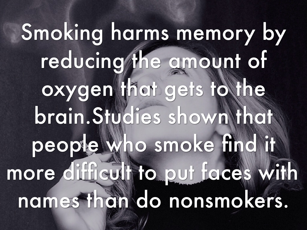 Smoking harms memory by reducing the amount of oxygen that gets to the brain.Studies shown that people who smoke find it more difficult to put faces with names than do nonsmokers.