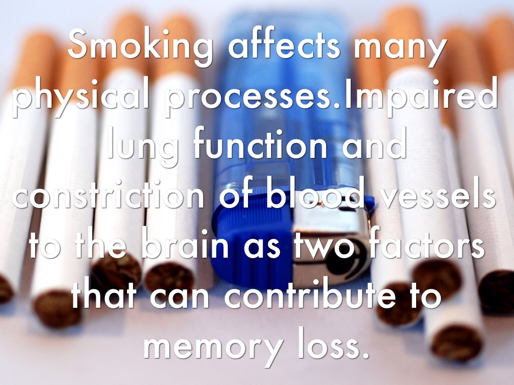 Smoking affects many physical processes.Impaired lung function and constriction of blood vessels to the brain as two factors that can contribute to memory loss.