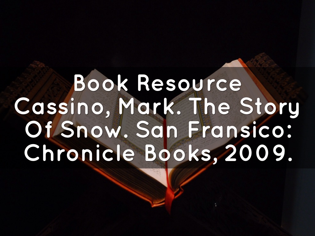 Cassino, Mark. The Story Of Snow. San Fransico: Chronicle Books, 2009.
