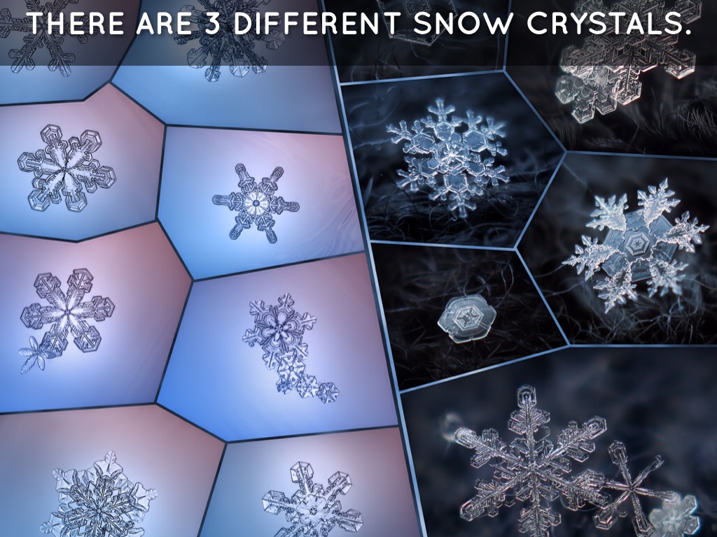 THERE ARE 3 DIFFERENT SNOW CRYSTALS.