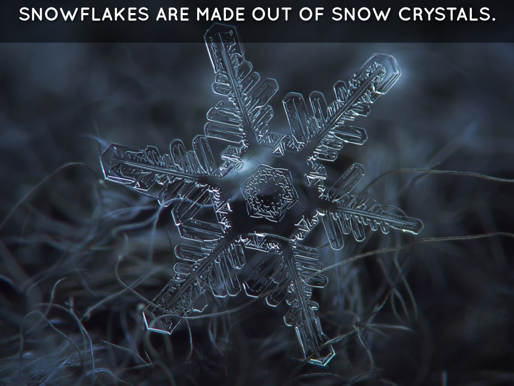 SNOWFLAKES ARE MADE OUT OF SNOW CRYSTALS.