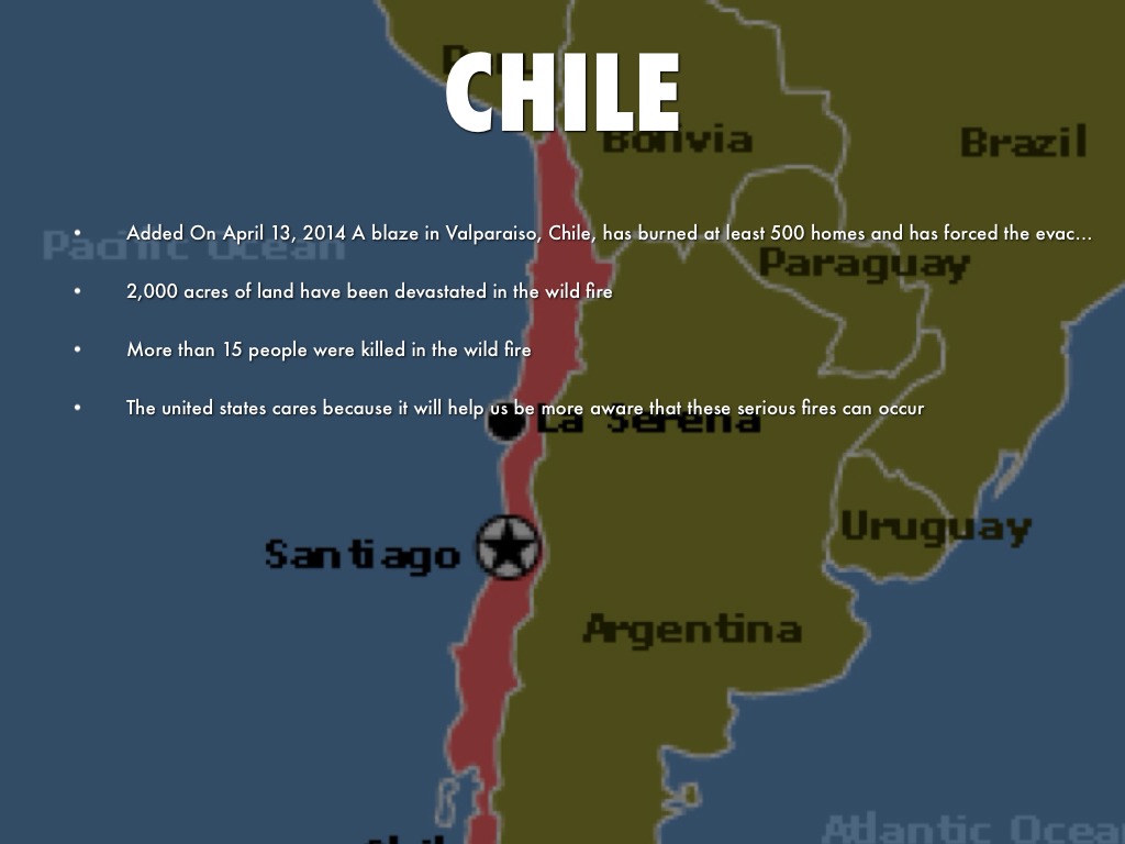 Added On April 13, 2014 A blaze in Valparaiso, Chile, has burned at least 500 homes and has forced the evacuation of 3,000 residents.