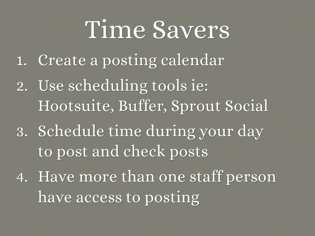Use scheduling tools ie: Hootsuite, Buffer, Sprout Social