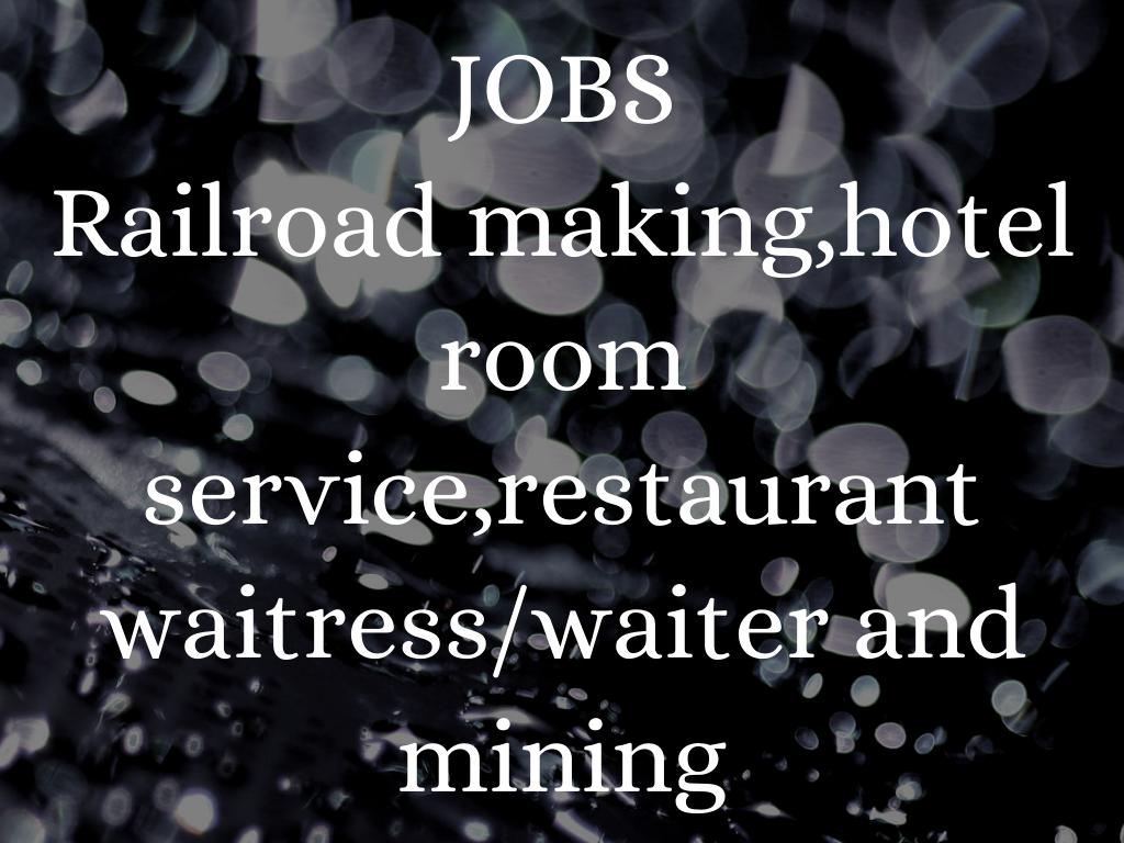 Railroad making,hotel room service,restaurant waitress/waiter and mining