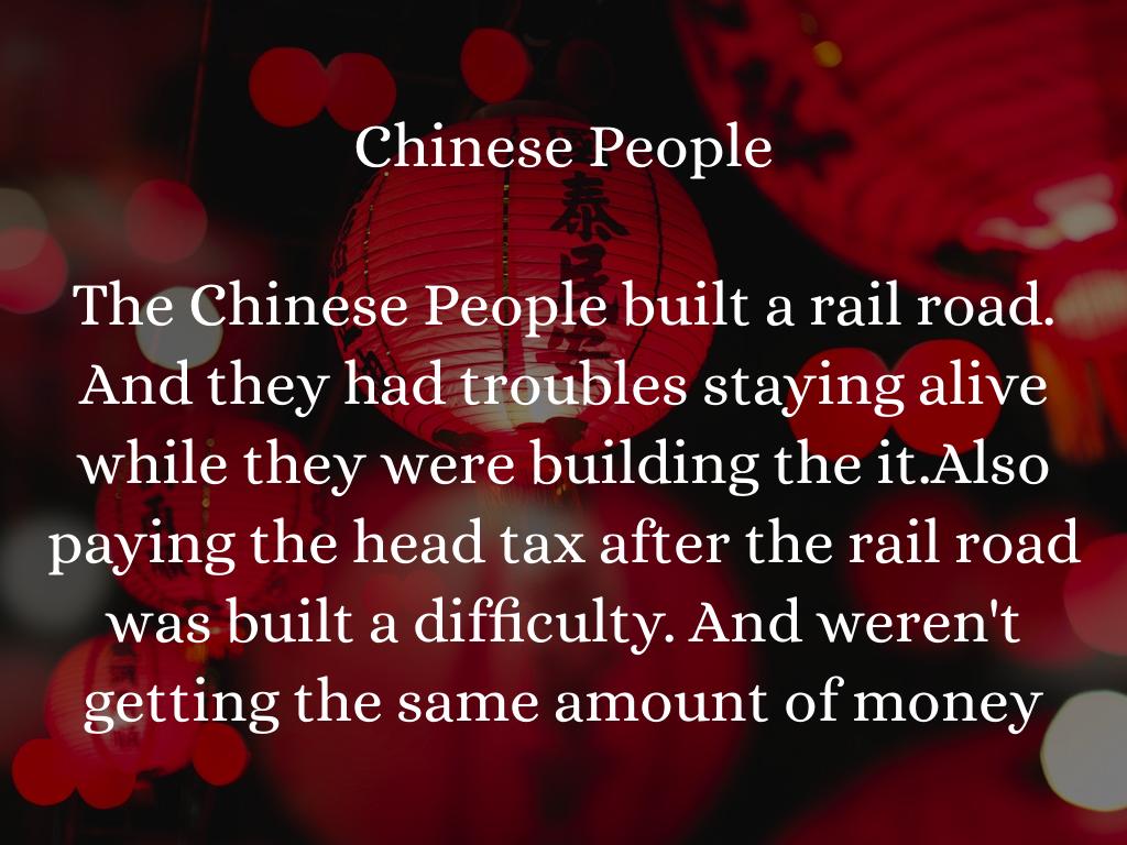 The Chinese People built a rail road. And they had troubles staying alive while they were building the it.Also
