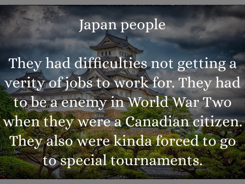 They had difficulties not getting a verity of jobs to work for. They had to be a enemy in World War Two when they were a Canadian citizen. They also were kinda forced to go to special tournaments.