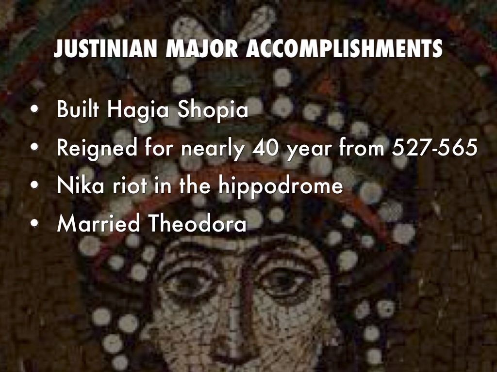JUSTINIAN MAJOR ACCOMPLISHMENTS