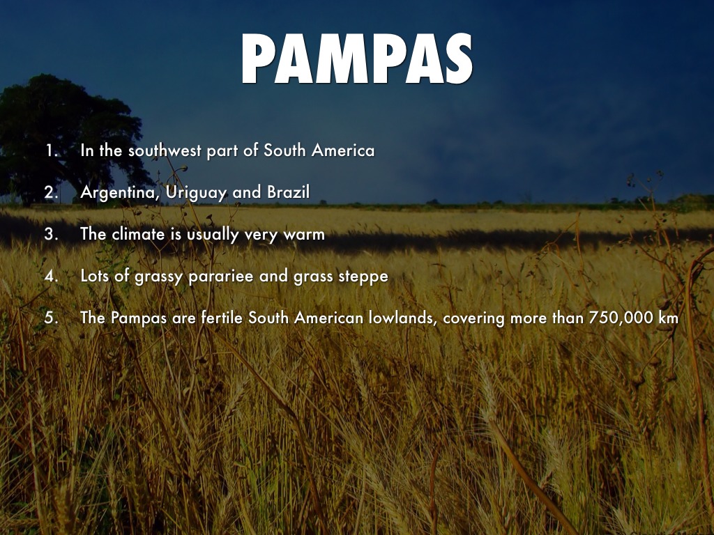 • The Pampas are fertile South American lowlands, covering more than 750,000 km